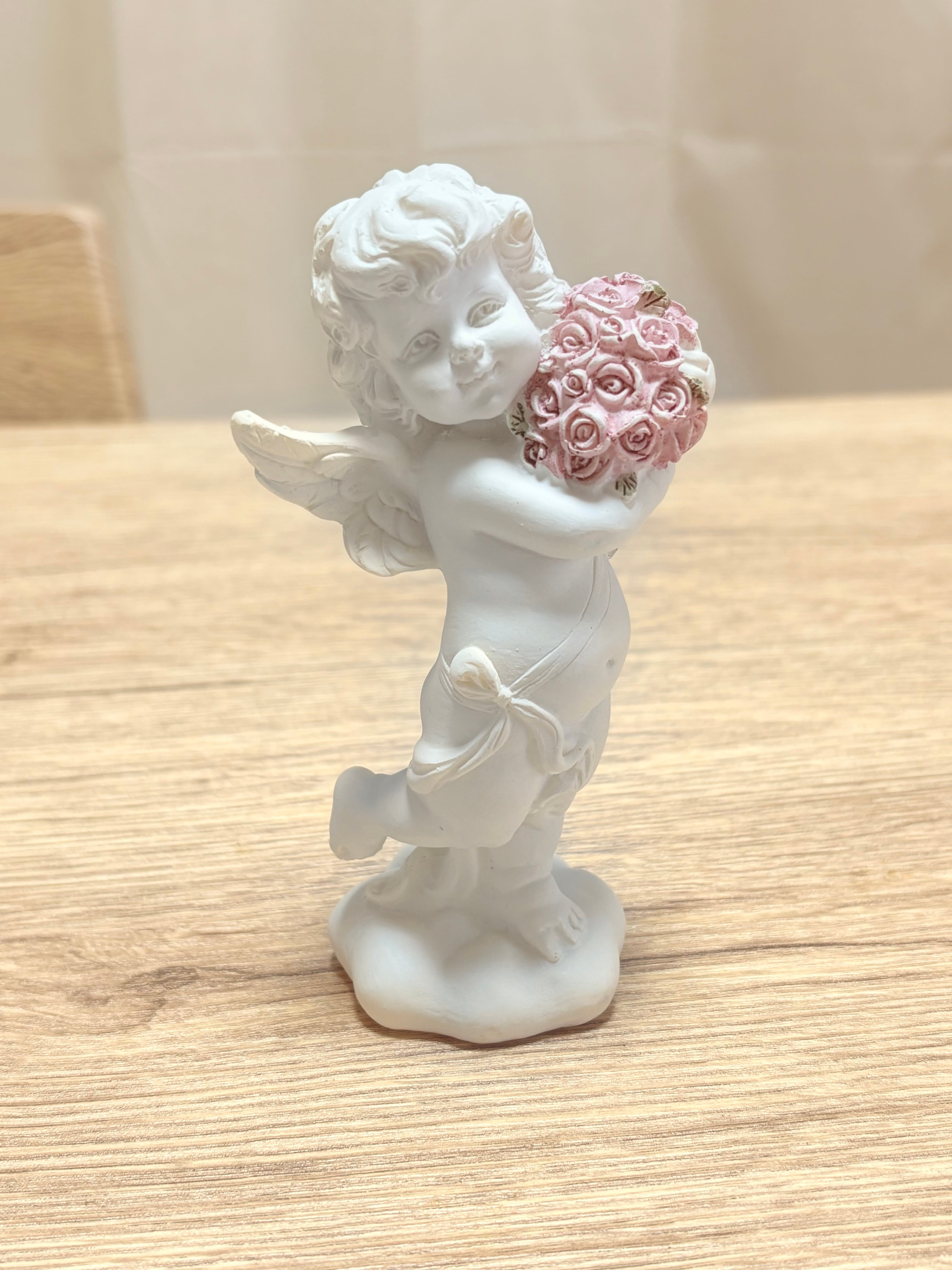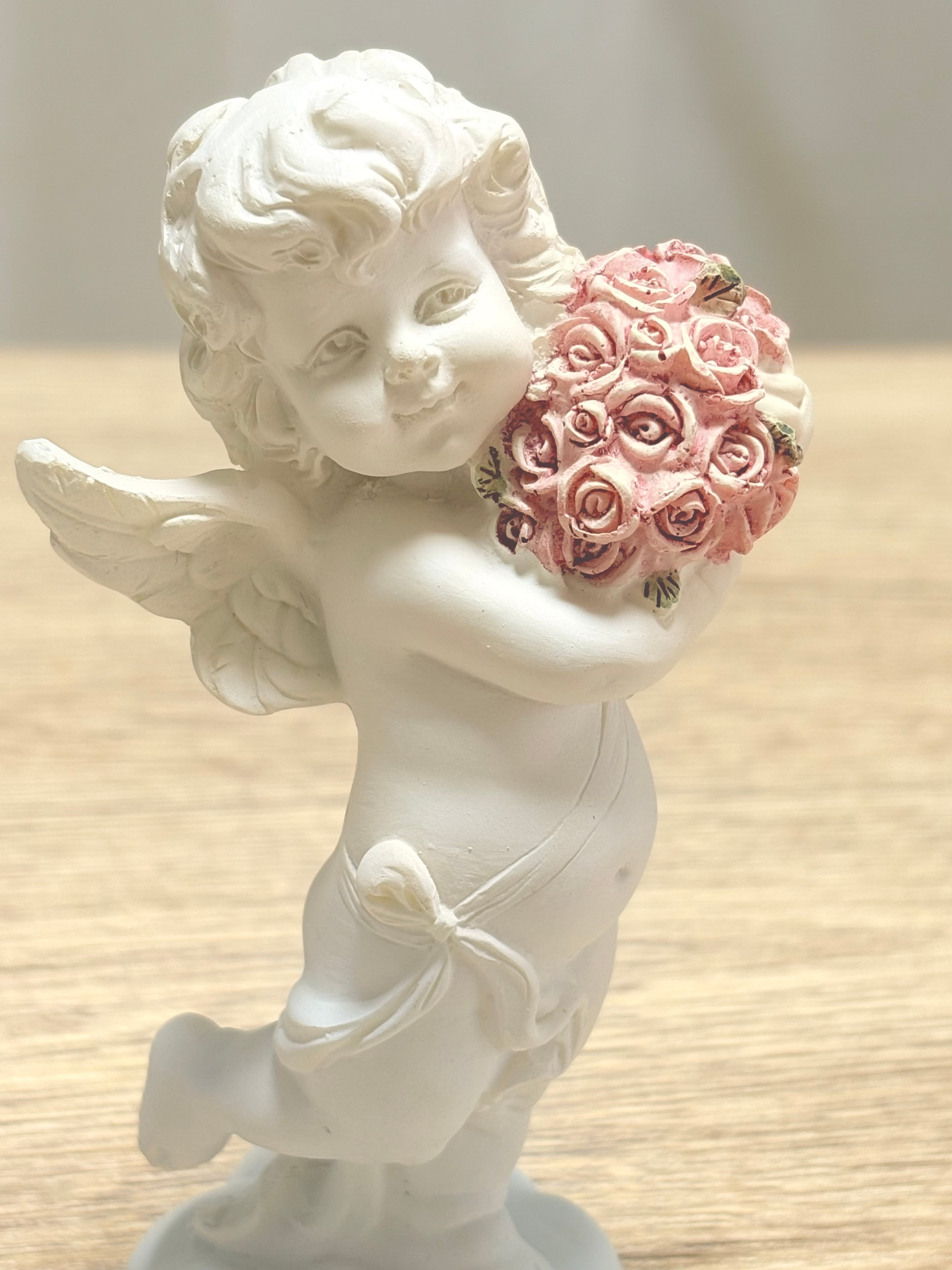 QSC519B(sku191) 高さ140mm*幅約60mm*厚み約43mm 可愛いピンクのローズを手に持ってほほ笑む天使が とっても 愛らしいです。 出来るだけ忠実に商品のイメージをお伝えしようと心がけて おりますが、実際の商品とは色、イメージが異なる場合がありますので ご了承下さい。(海外製品の為外箱にいたみがある場合がございます)