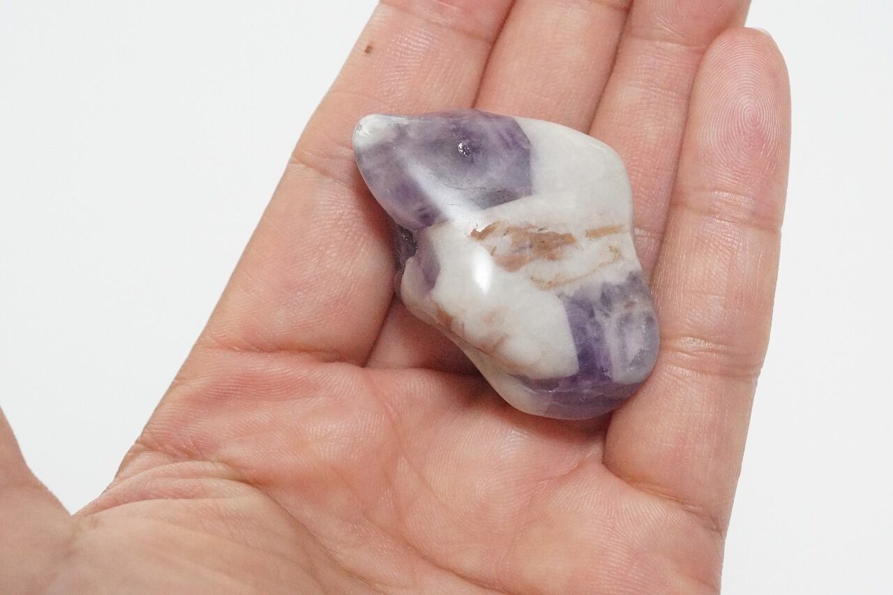 真ん中に白が入り、シェブロンアメジストは1点1点模様が面白いです。