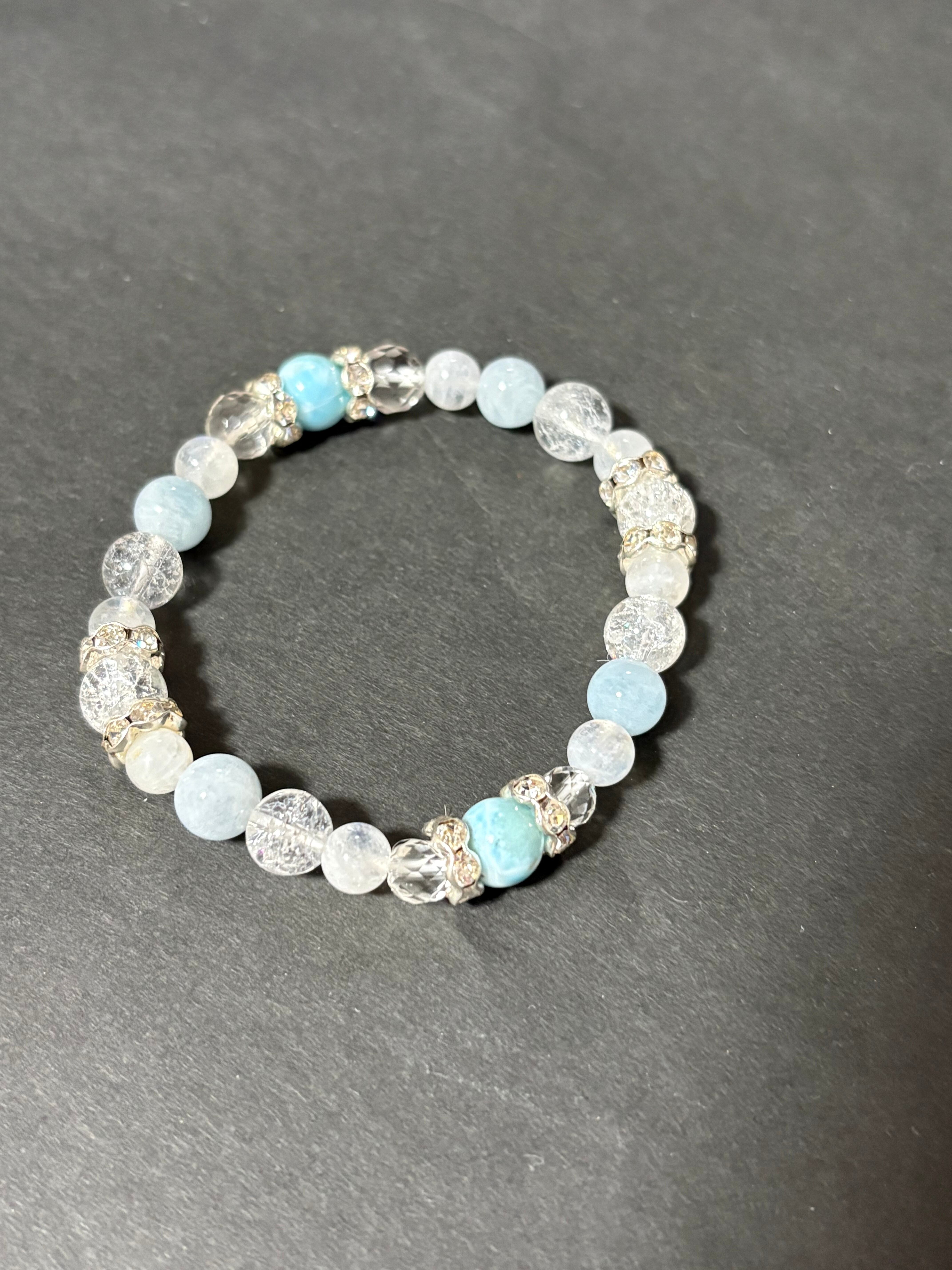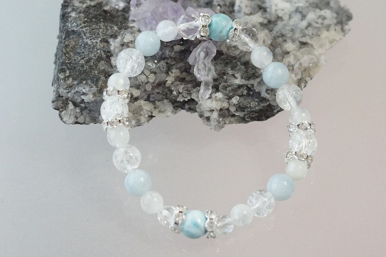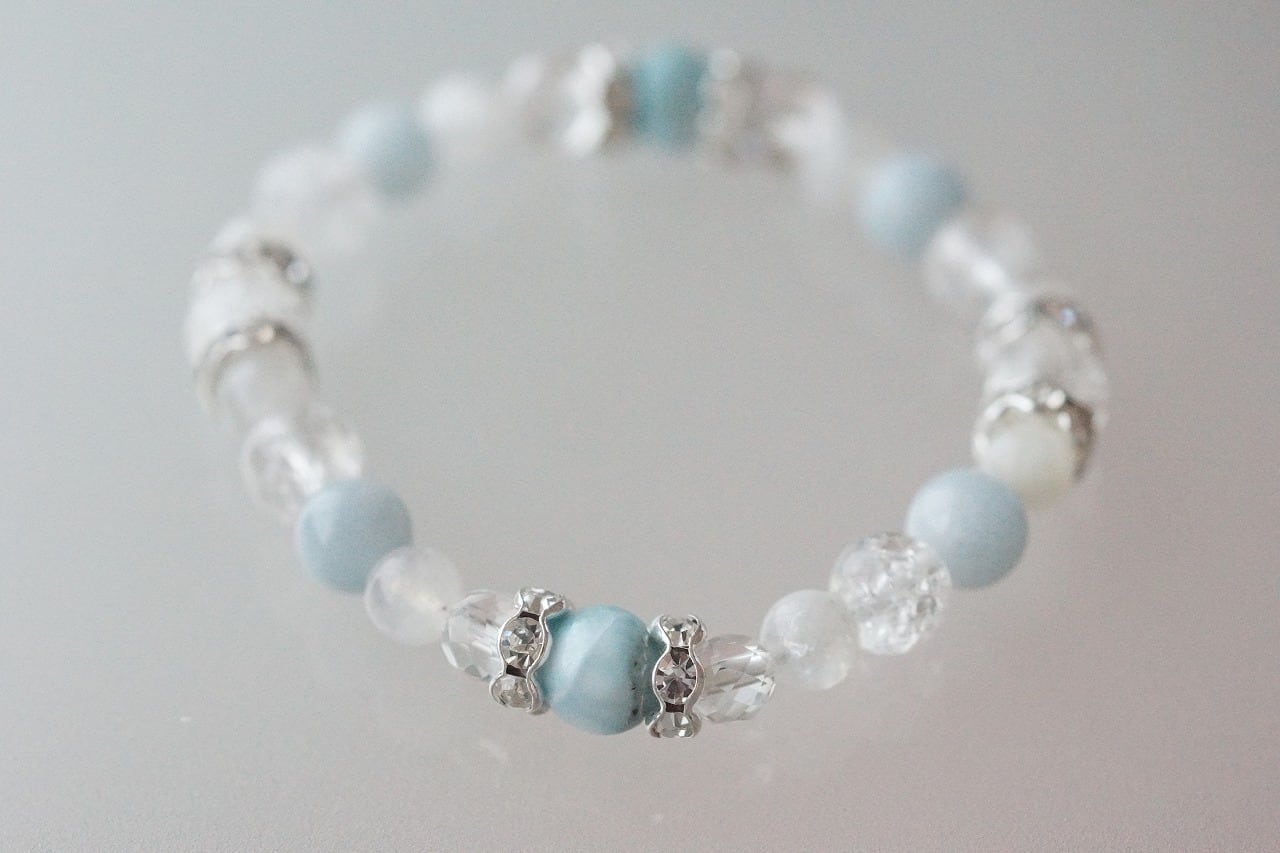 ピースフルで大人気のラリマーに、アクアマリン、ブルームーンストーンと大人気シリーズの石をちりばめて爽やかで美しい女性らしいブレスレットが仕上がりました(^^)/どの石も女性的で穏やか、慈愛に満ちた石シリーズです。