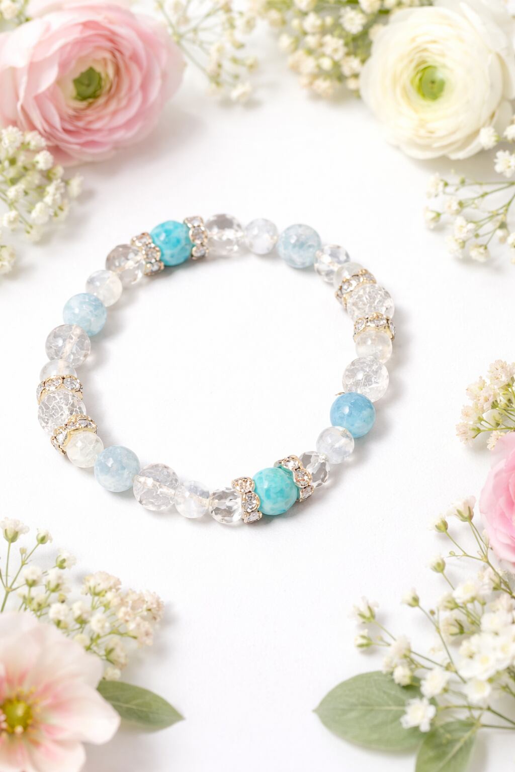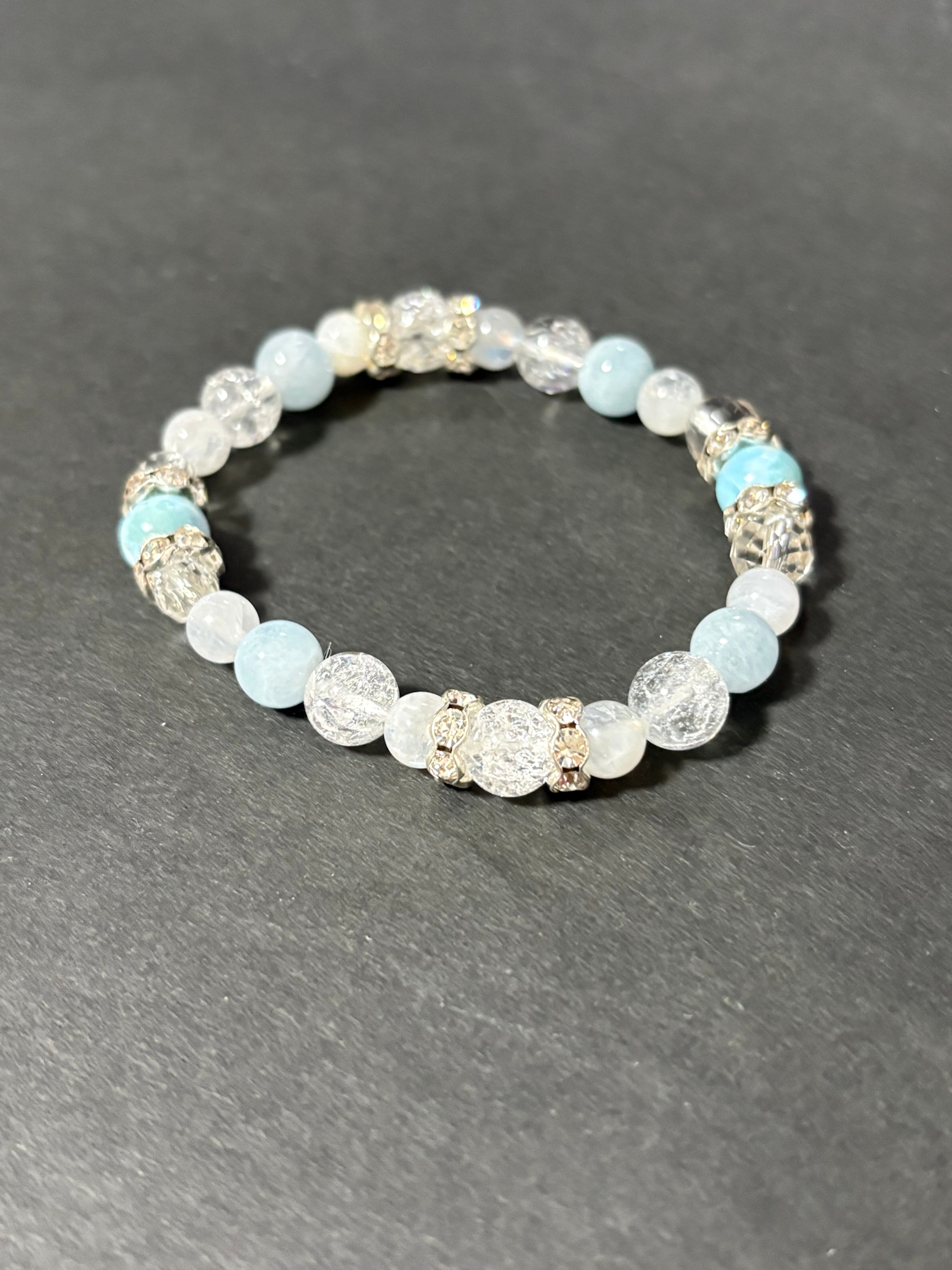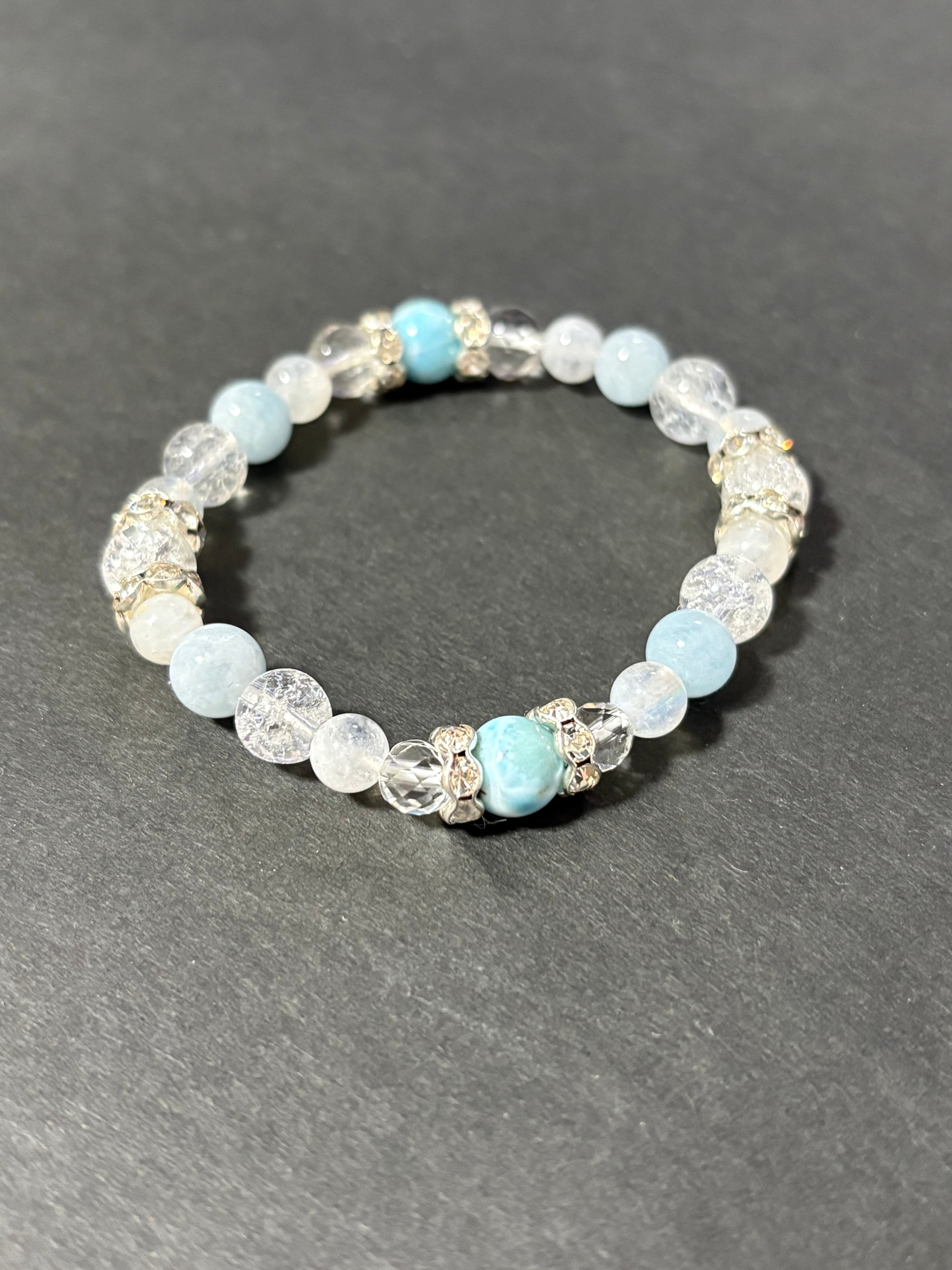 ピースフルで大人気のラリマーに、アクアマリン、ブルームーンストーンと大人気シリーズの石をちりばめて爽やかで美しい女性らしいブレスレットが仕上がりました(^^)/どの石も女性的で穏やか、慈愛に満ちた石シリーズです。