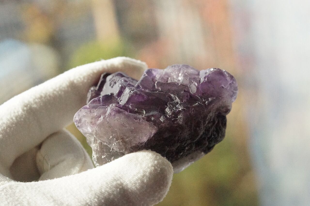 紫色が濃いフローライトの原石です。透明度はあまりないタイプですが雰囲気があります。紫フローライトが好きな方には、お値段はお手頃で最適です。