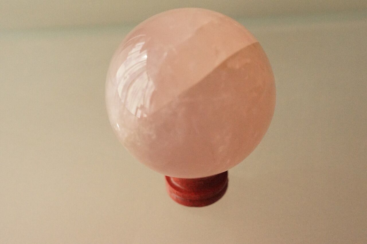 スターははっきり見えずに1本の光の筋とうっすら星が見える程度です。でもクラックはあるものの大きさも53mmと充分でローズクォーツとしても可愛い色合いです。