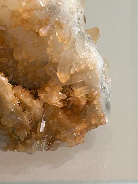 裏と表が全く違う表情をみせる面白いタンジェリンクォーツです。オレンジで非常に小さな結晶の群生やミルキーなオレンジの結晶など違う結晶が楽しめます(*^_^*)