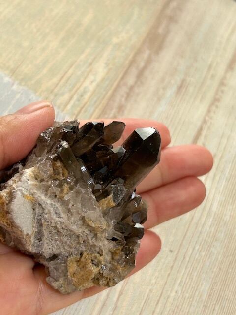 縦にキチンと自立はしませんが、横置きでコロンと可愛い形で黒が濃く、小さな結晶が可愛いです(*^_^*)