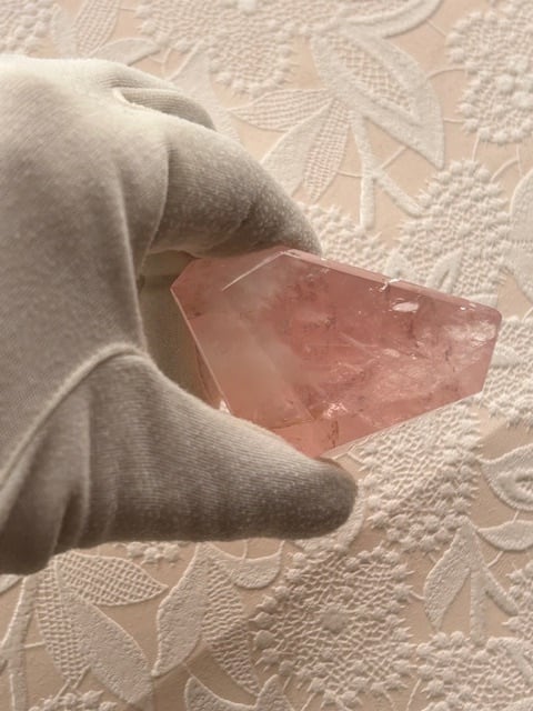 ピンク色が美しく透明度が高く見ているだけで本当~に癒やされる高品質ローズクォーツです。ややいお高めですが満足感は高い逸品です。