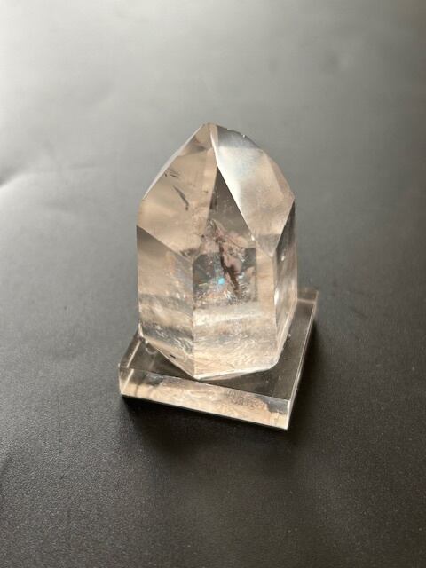 大きめのファセット部分が七角形で裏側に大きめの三角形があり異次元と繋がることが出来ると言われているチャネリングストーンクリスタルです。七角形の裏の三角形がこれだけ大きいのは珍しく水晶も素敵で、小さい虹(小さいブルーが入るので)とても可愛いです。アクリル板は取り外して発送しておりますが、アクリル板がついたままの方が良い方は備考欄でご連絡下さいませ。