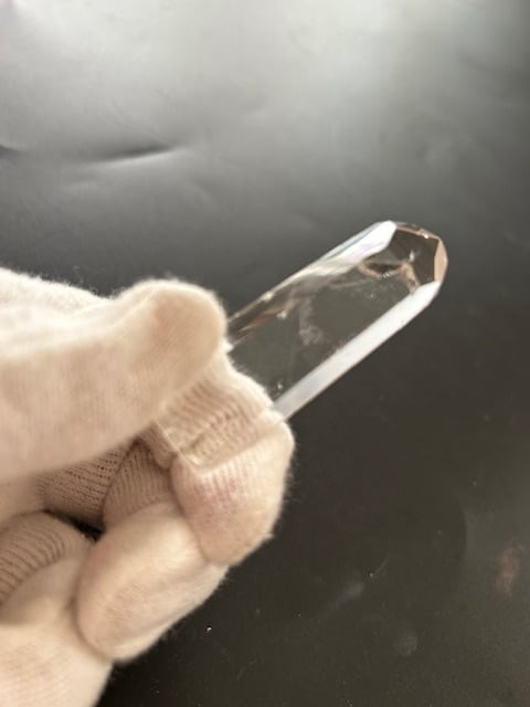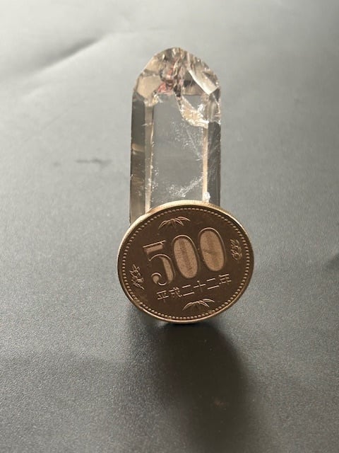 細長くてスッキリと美しくうっすらファントムが入っています。そしてよく見ると大きめのファセットがやや形が崩れているものの七角形でその裏側が三角形になっており異次元の世界と繋がることが出来ると言われているチャネリングストーンになっております。