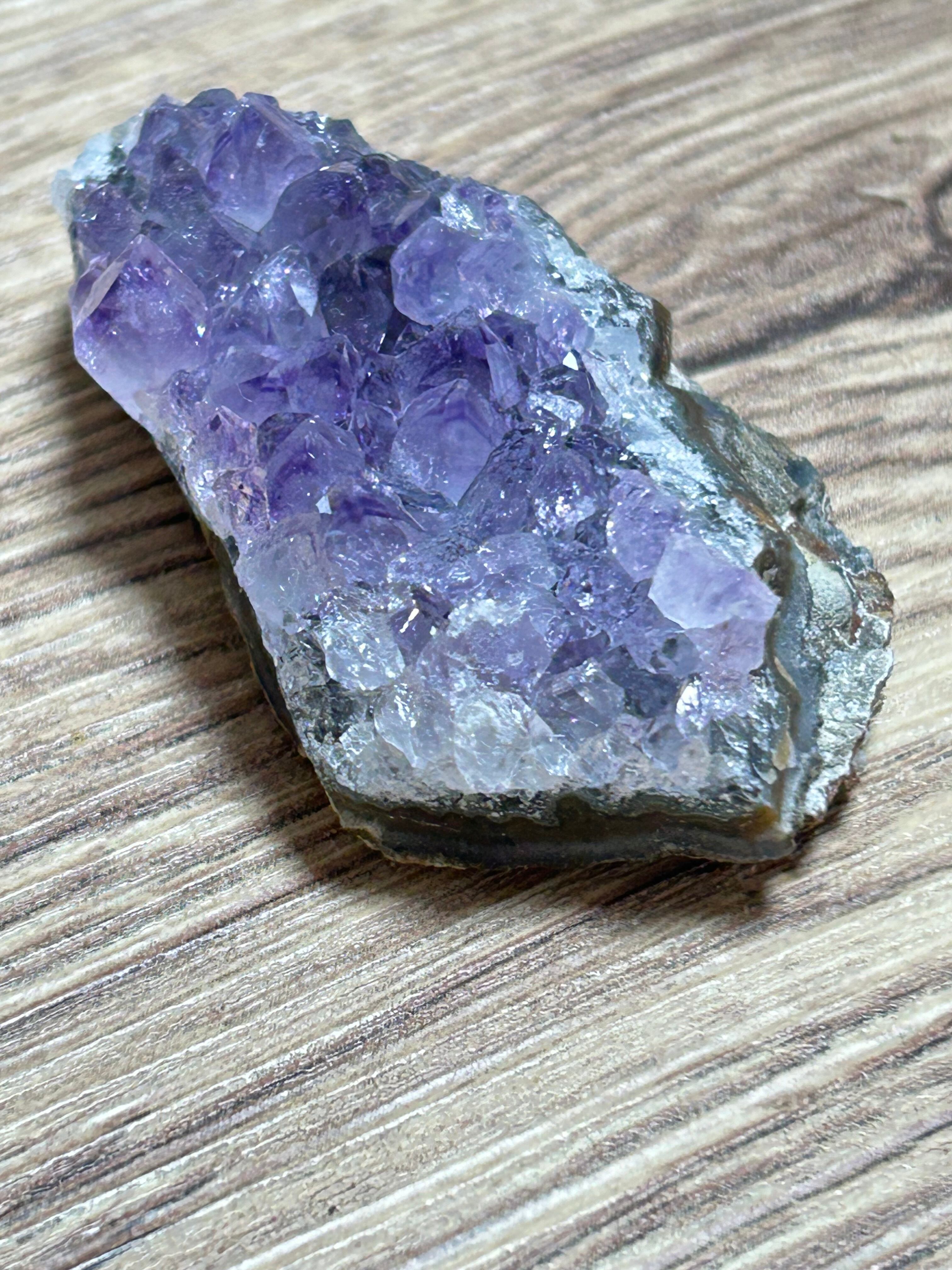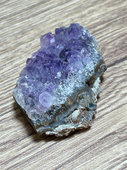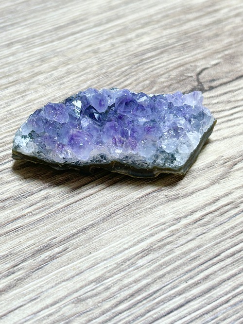 小さめのアメジストクラスターで結晶も小さめなのですが結晶の一個一個に透明度があり全体的にキラキラするので満足感がある可愛いクラスターです。