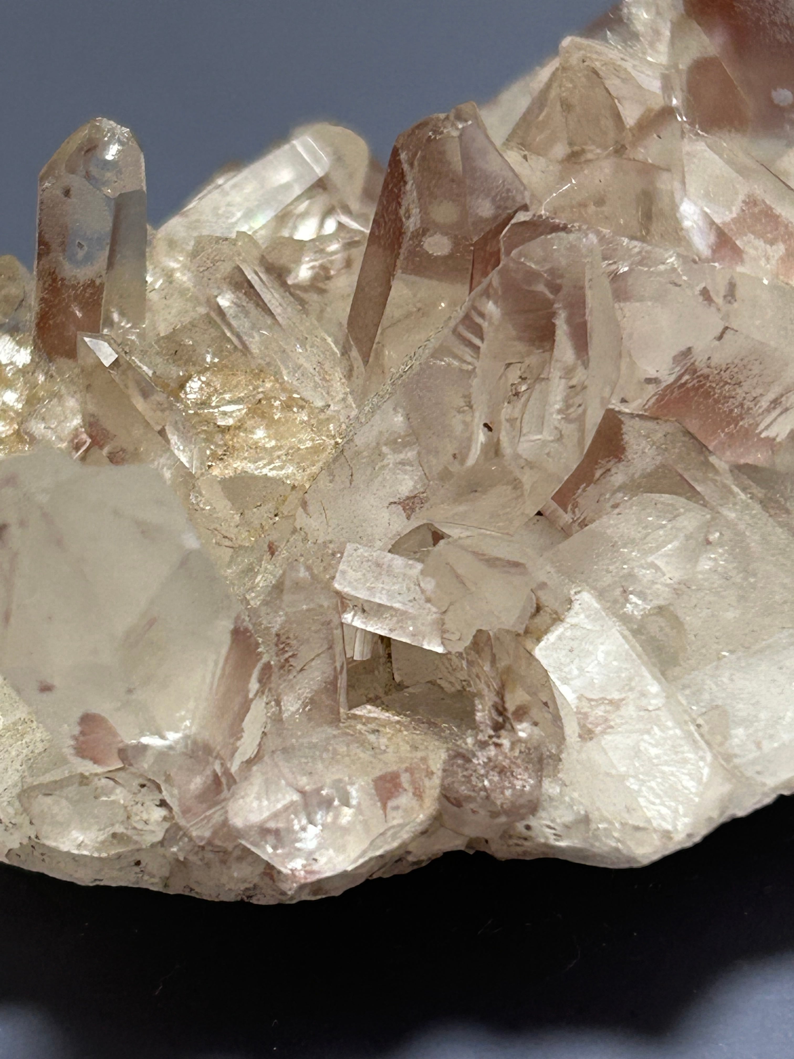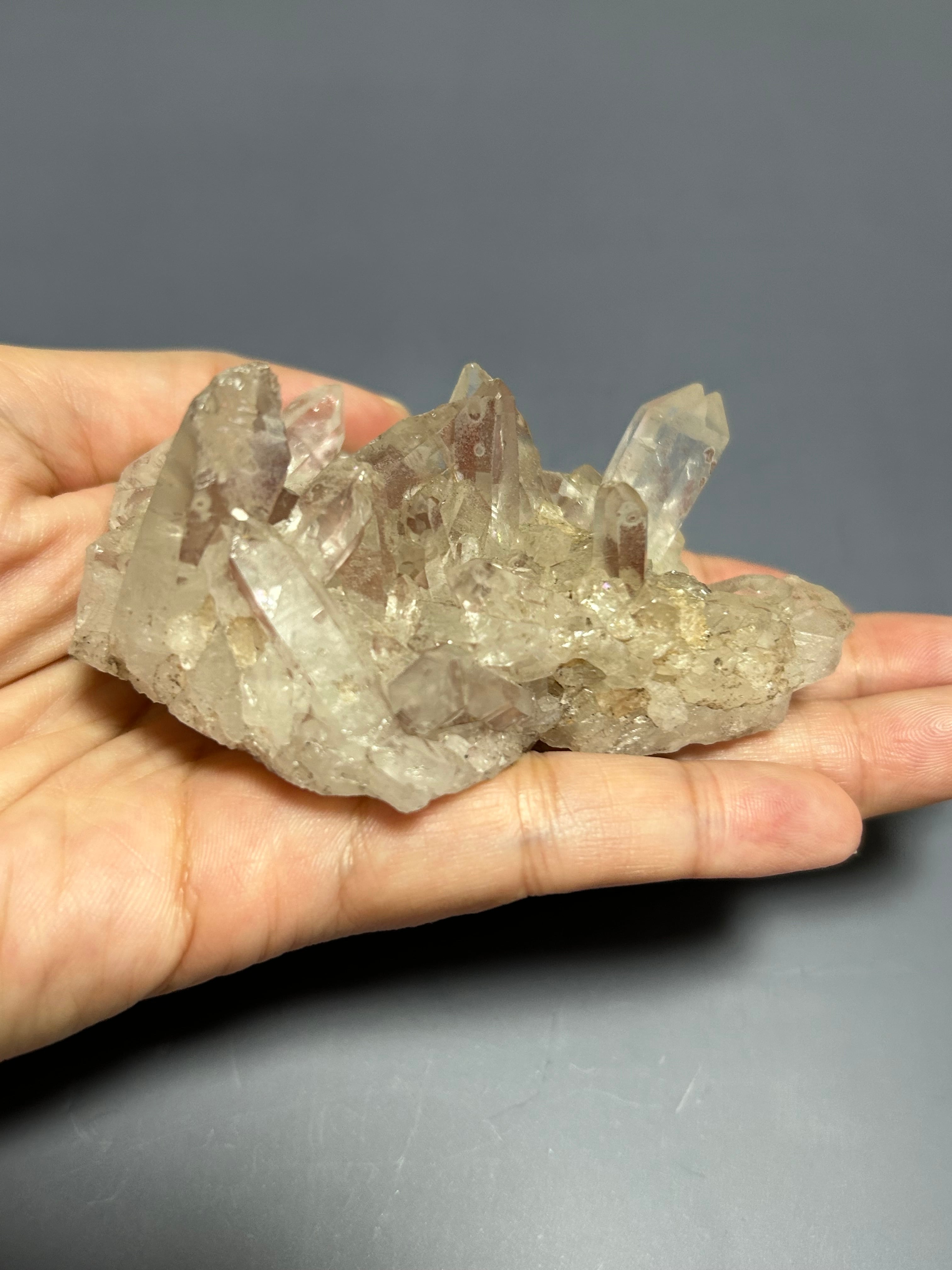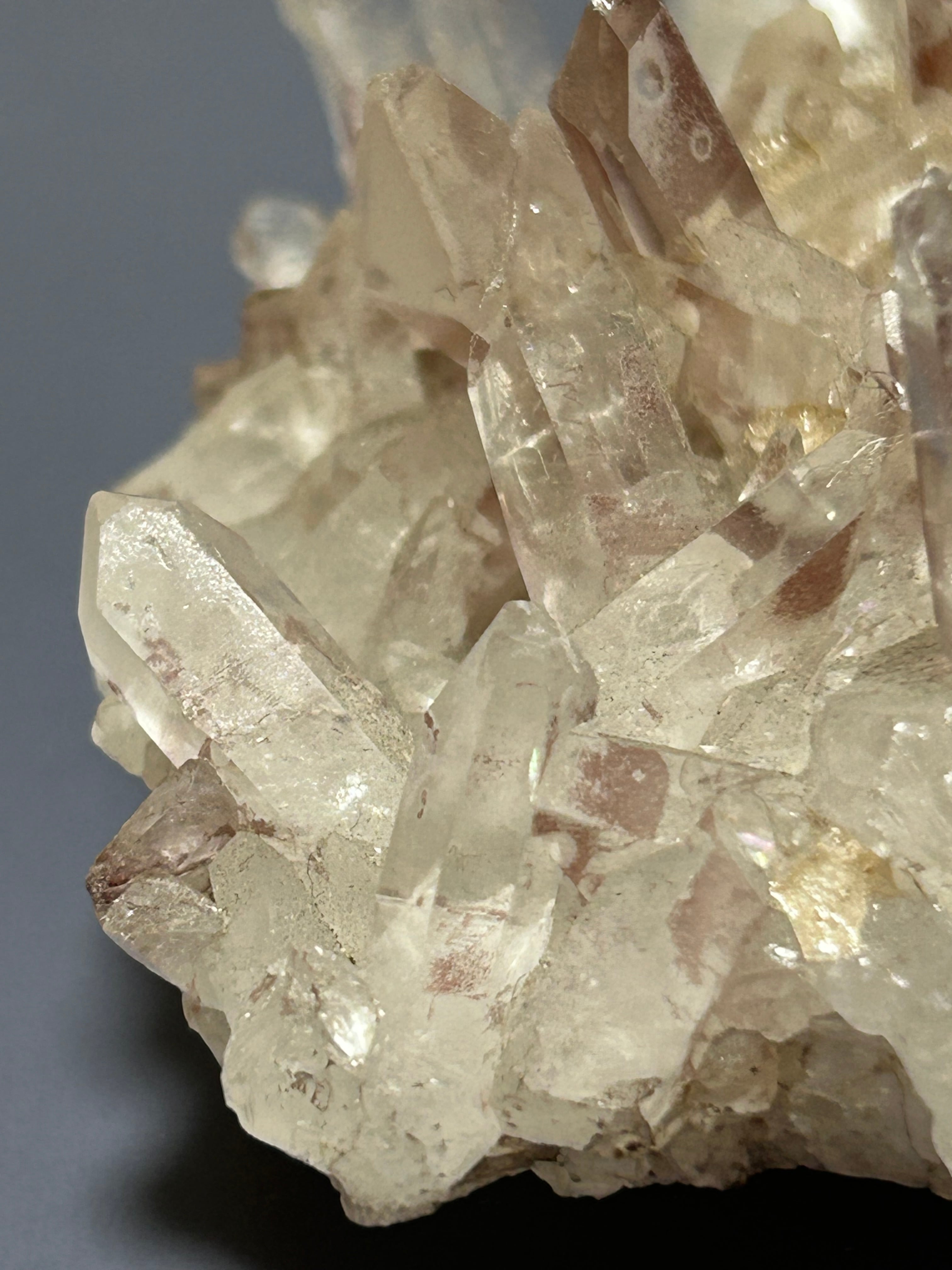 タンジェリンクォーツというか「レッドクォーツ」にも見えますが、問屋さんでは「タンジェリンクォーツとして販売されていました。水晶が双子のように一緒に成長した「ソウルメイト(タントリックツイン)」水晶も育っていて素敵です。