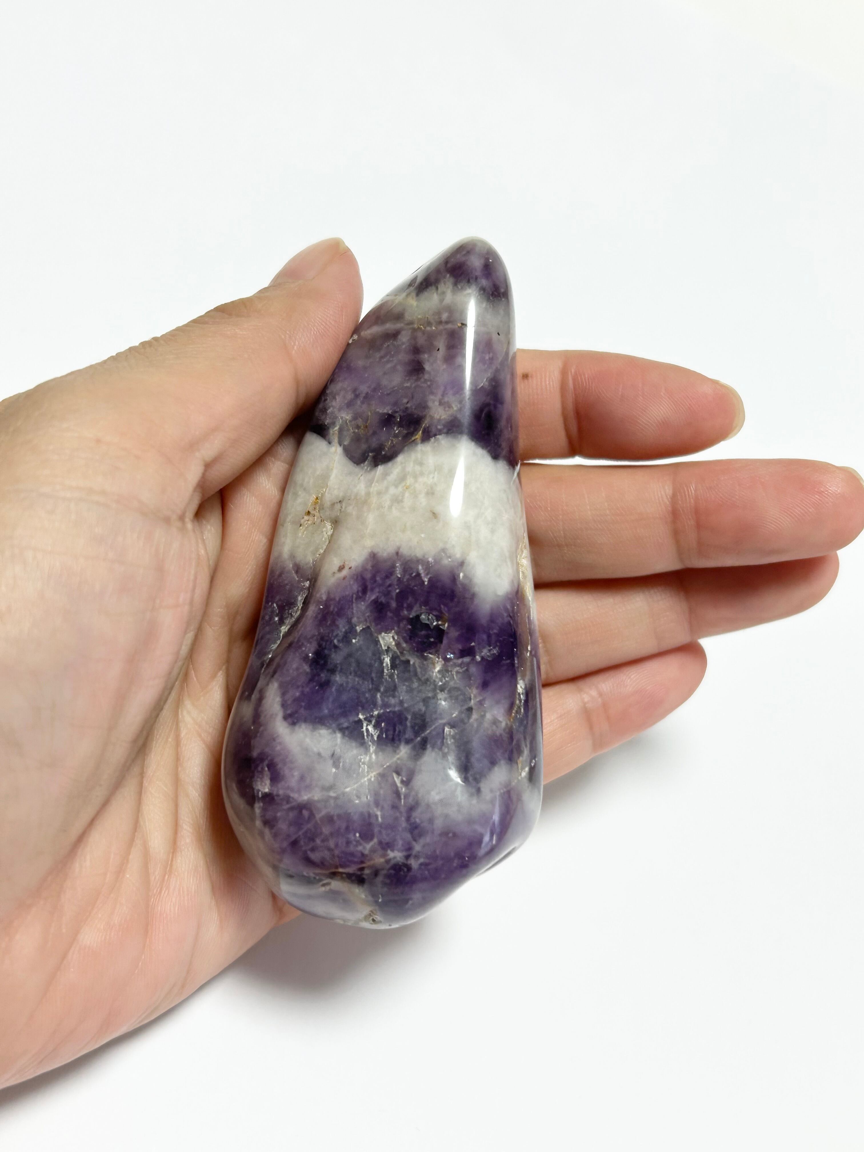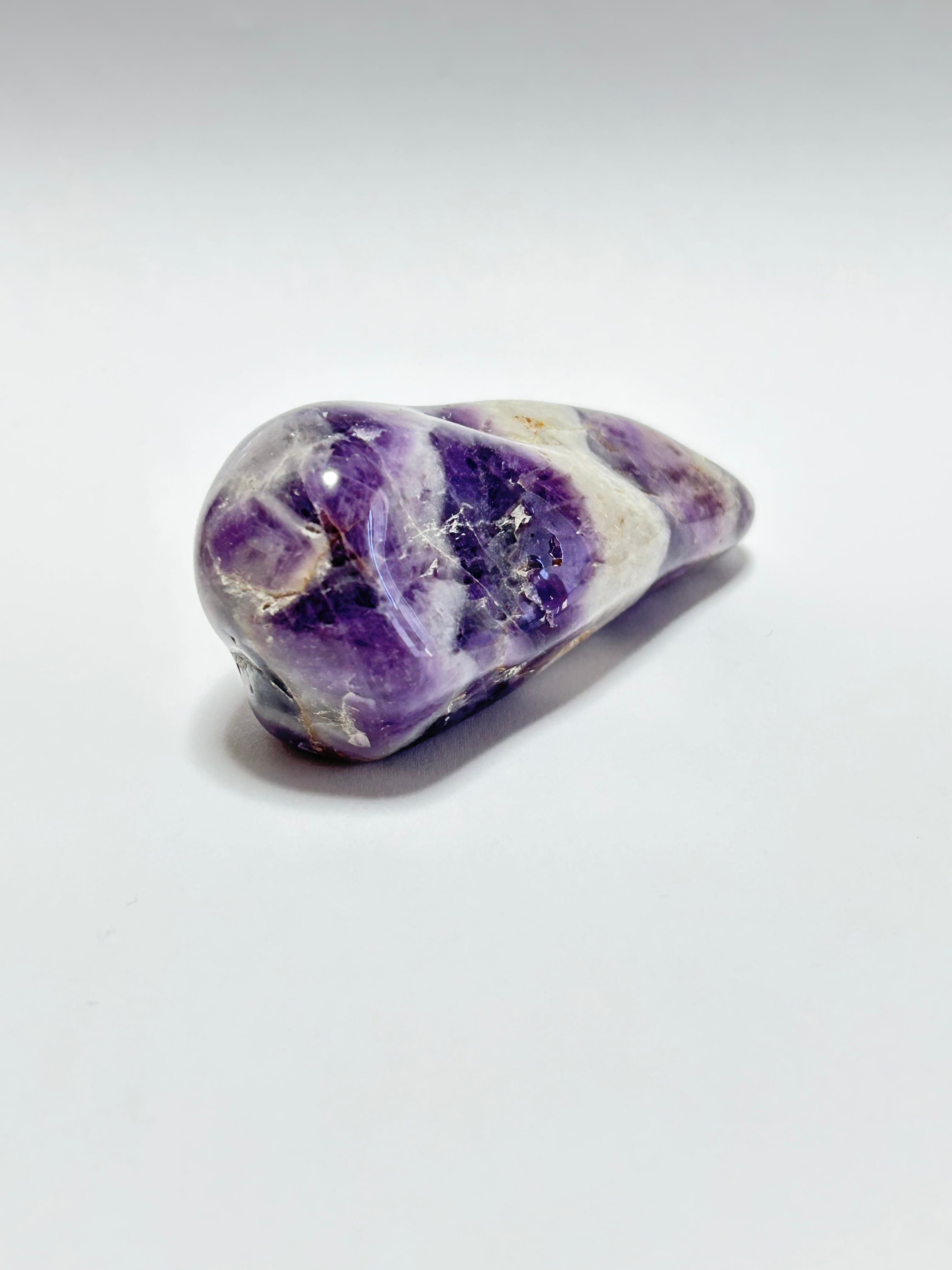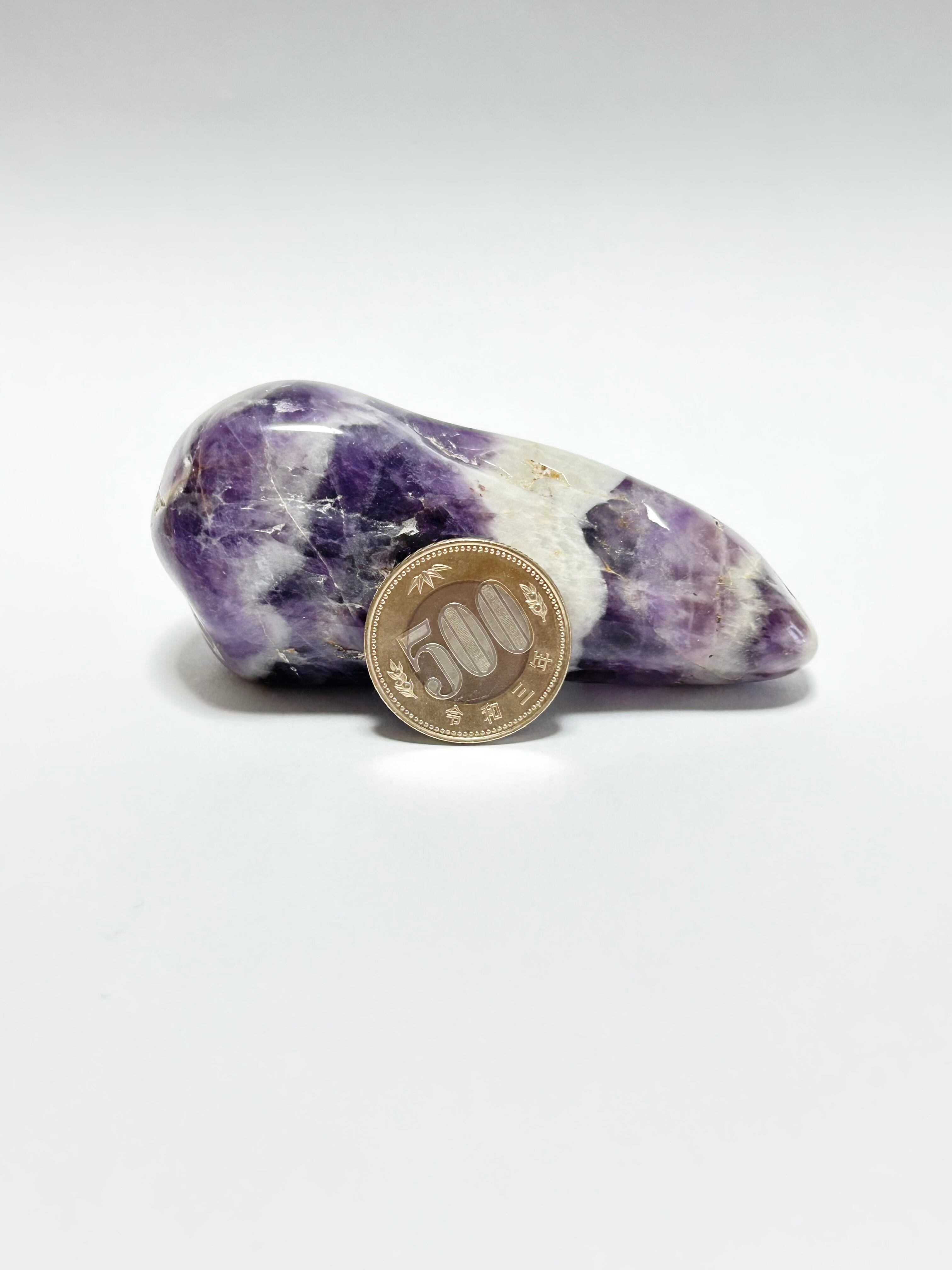 紫色は昔から高貴な色とされは神聖・神秘という言葉がとてもふさわしい感じです。アメジストは水晶の持つスピリチュアルなパワーを最もよく発揮するとも言われ、インスピレーションが冴えるといわれます。また、守護霊の力を強め、邪霊から身を守る魔よけとしても有名です。又ドーム型のアメジストは古来より、風水の開運グッズとしてかなりポピュラーで、財をがっちり掴むとされています。玄関、又は財位の方位へ。