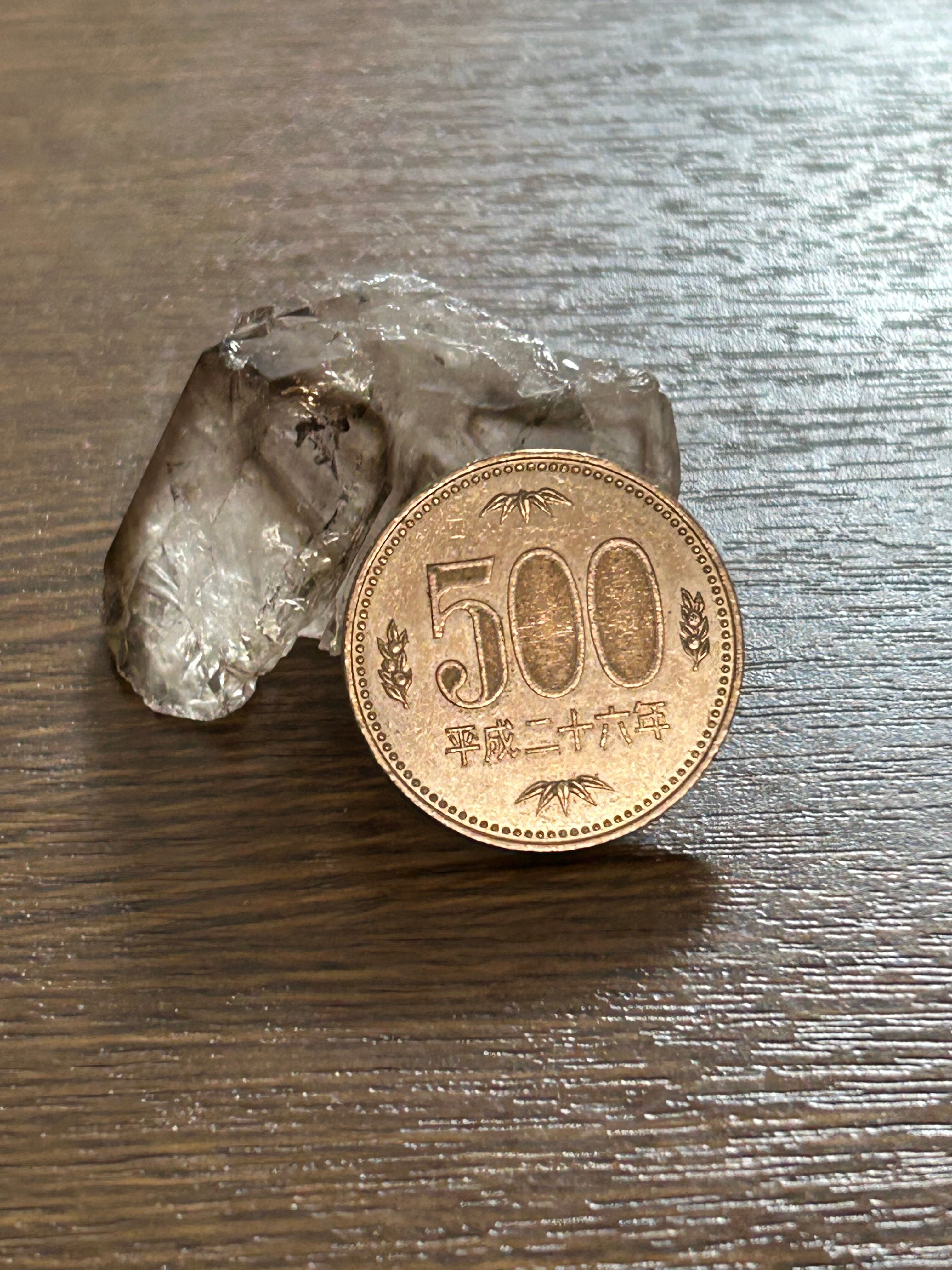 透明度が高く濃い目の茶色でふちどりされたスモーキーが可愛いアリゲーターエレスチャルです。中をのぞくと小さな虹がちらちらと輝きます。