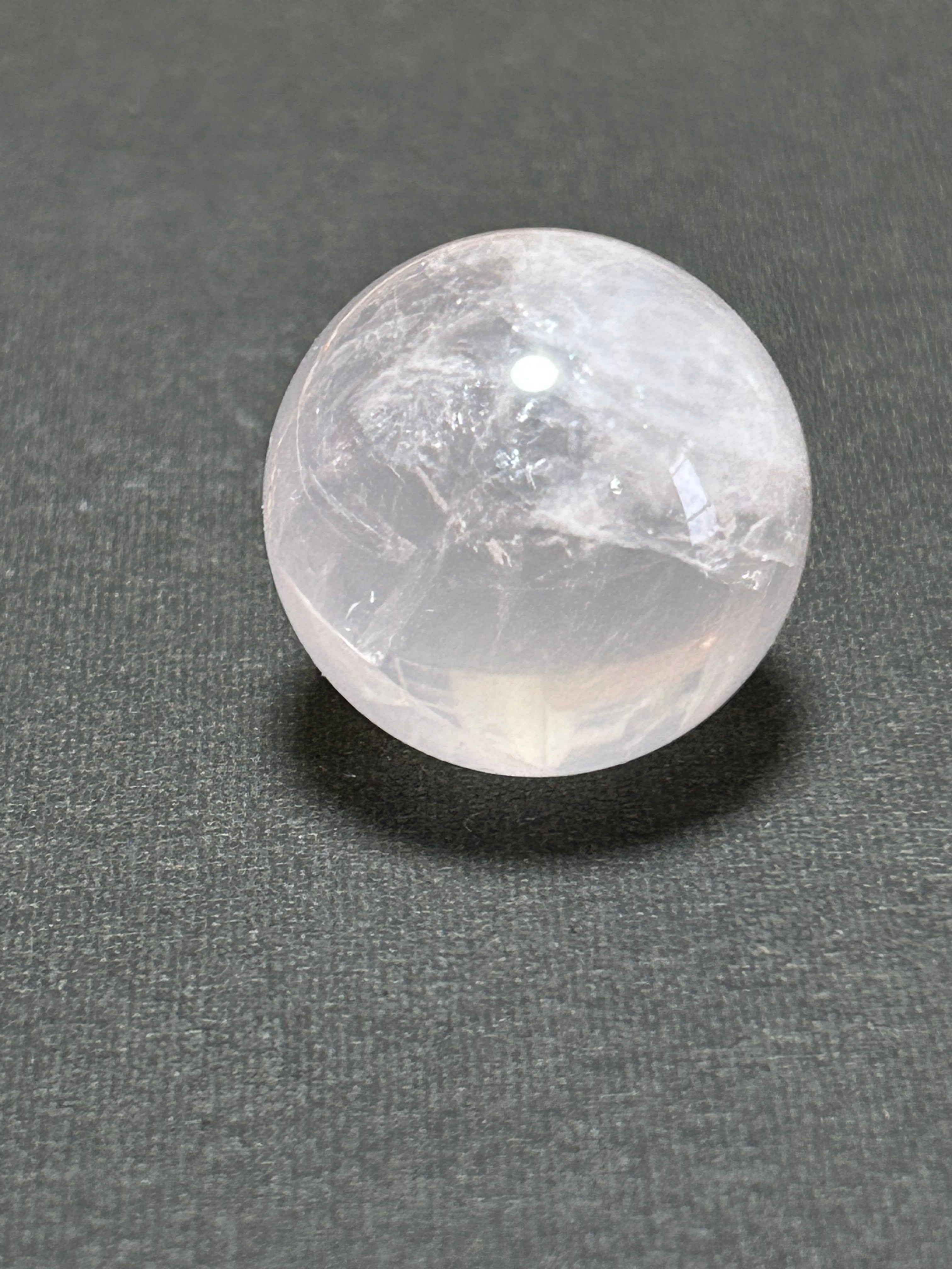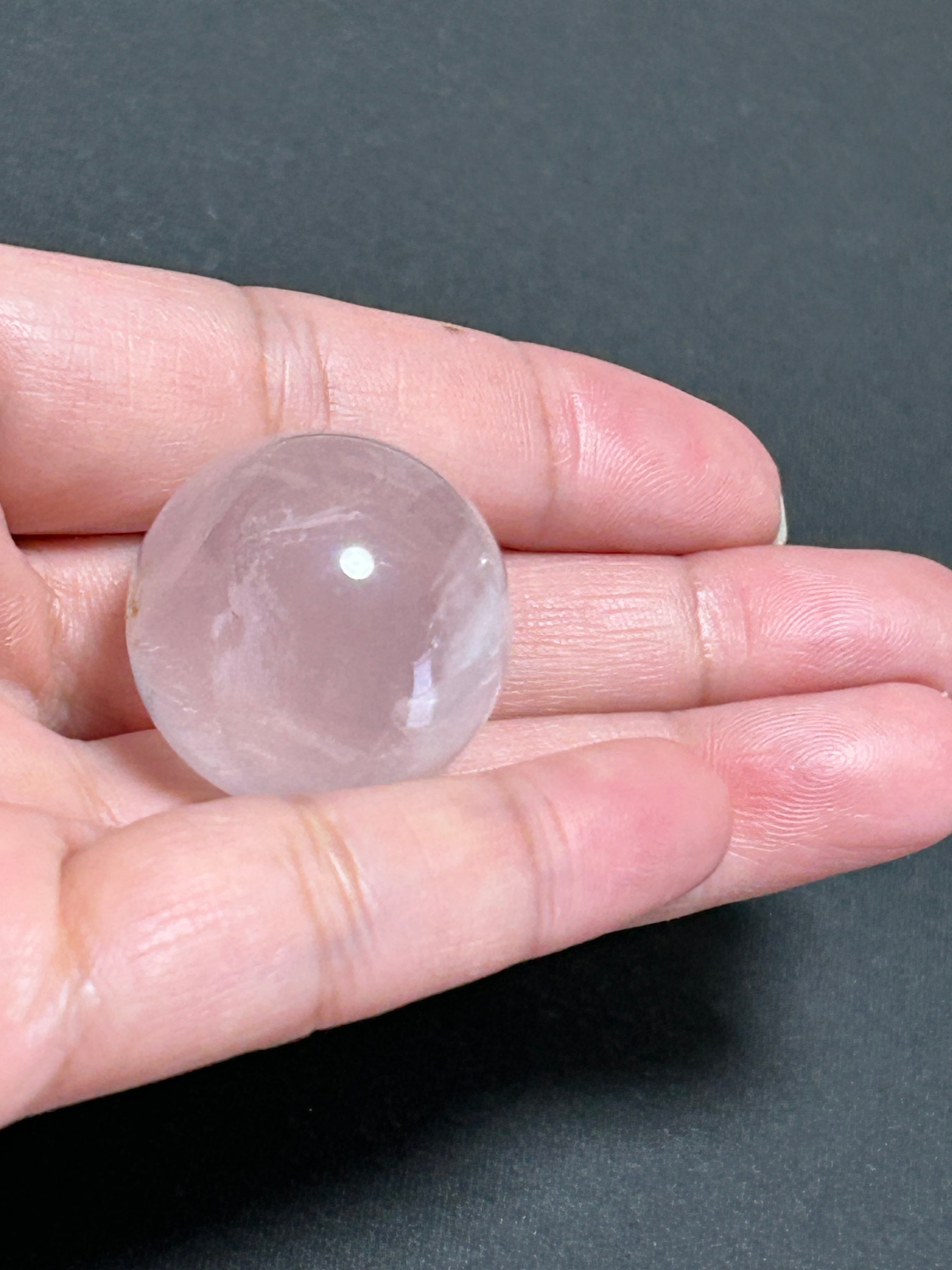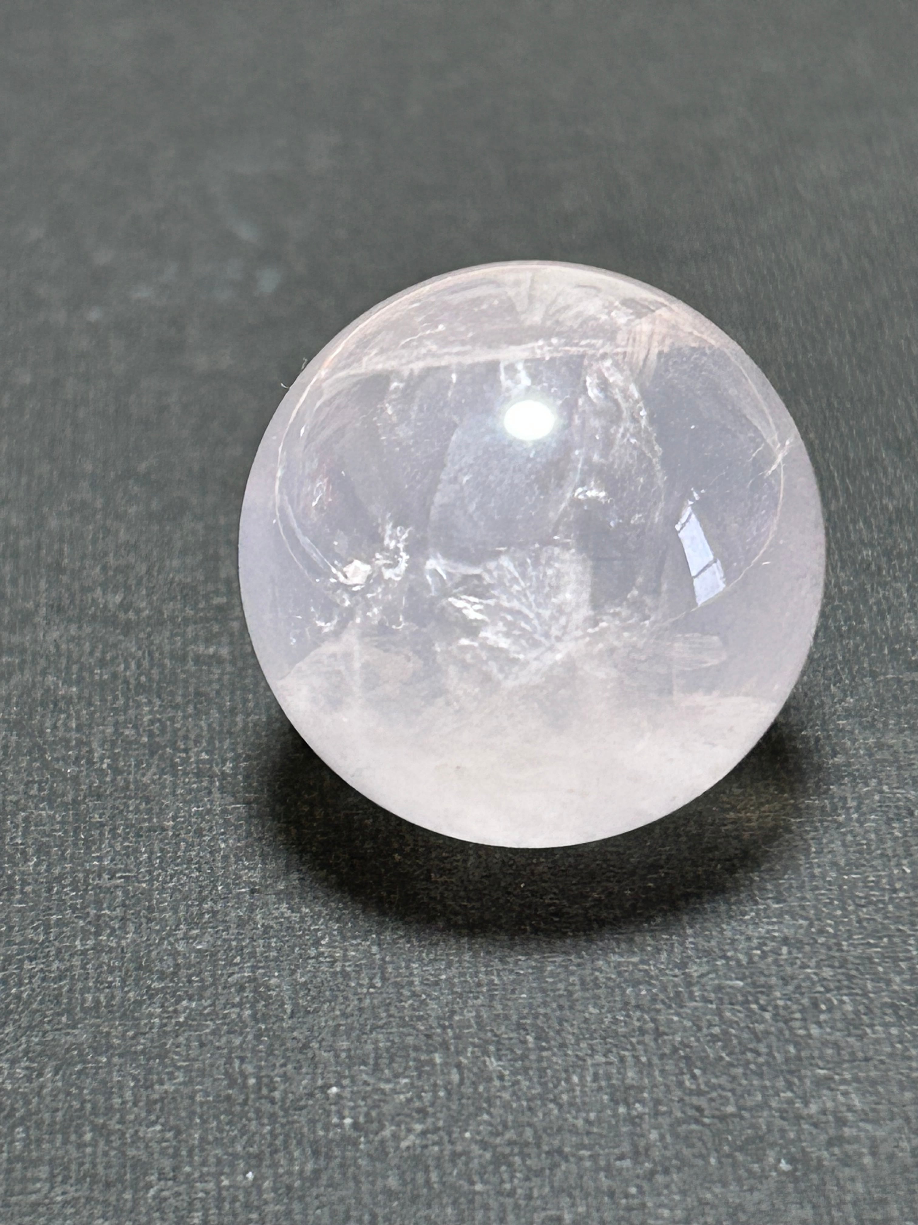 クラックがある部分もありますが透明度が高くメタモルフォーゼのような薄めのピンクが非常にかわいらいいローズクォーツの丸玉です。お値段もお手頃なのが嬉しいところです♡